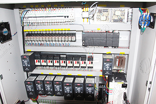2、“智能型”彩色觸摸屏人機操作節目,配按鈕開關操作,中文操作系統,各機構工作狀態實時顯示。故障點自動檢測并顯示,自動報警。