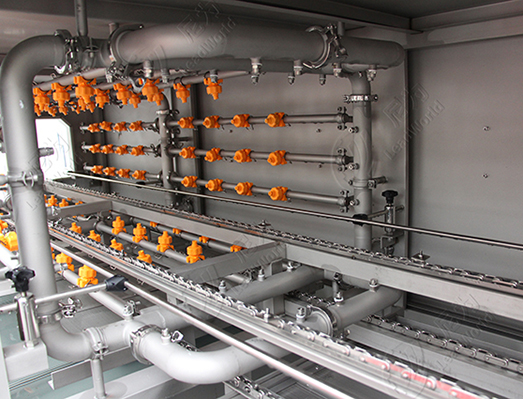 高清高壓清洗,噴嘴采用食品級耐高溫塑料或不銹鋼制作,清洗角度可調。噴頭扇面設計,不易堵塞,可選配風干機或烘干機 ,防止水垢滋生,便于后續快速利用。