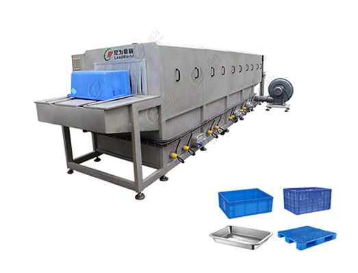 尼為洗筐機主要采用熱水洗、高壓洗、漂洗的方式進行清洗,分為進筐、預洗、主清洗、漂洗、吹干和出筐等環節。
